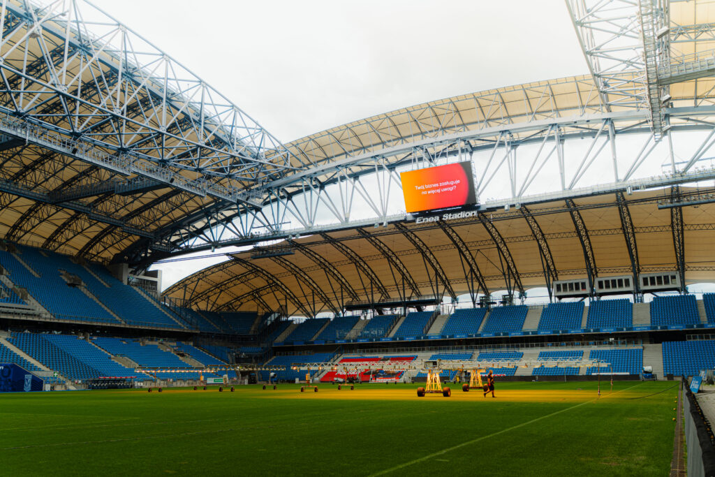 W ramach modernizacji systemu wizualnego na Enea Stadionie zealizowaliśmy kompleksowy montaż nowoczesnych ekranów LED w różnych strefach obiektu.