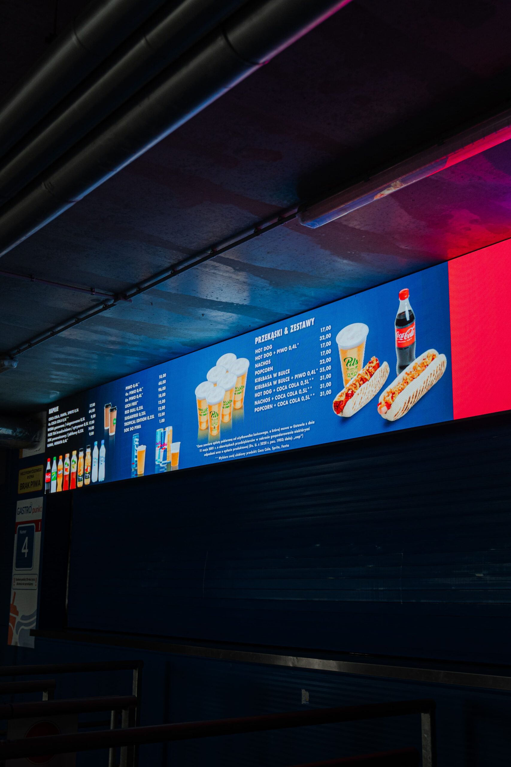 W przestrzeni gastronomicznej pojawiły się ledowe menuboardy, które umożliwiają atrakcyjną prezentację oferty gastronomicznej. Podczas meczu kibice nie przegapią już żadnej akcji – nawet gdy stoją w kolejce po przekąski. Nowe menuboardy oprócz prezentowania menu wyświetlają również transmisję na żywo z boiska. Dzięki temu kibice mogą śledzić przebieg spotkania w czasie rzeczywistym, nie tracąc ani sekundy piłkarskich emocji.